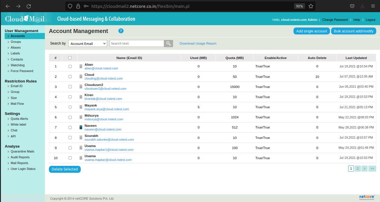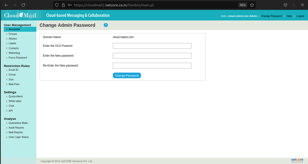 1. Login to Cloudmail admin panel >> http://cloudmail2.netcore.co.in/wsgi/login/