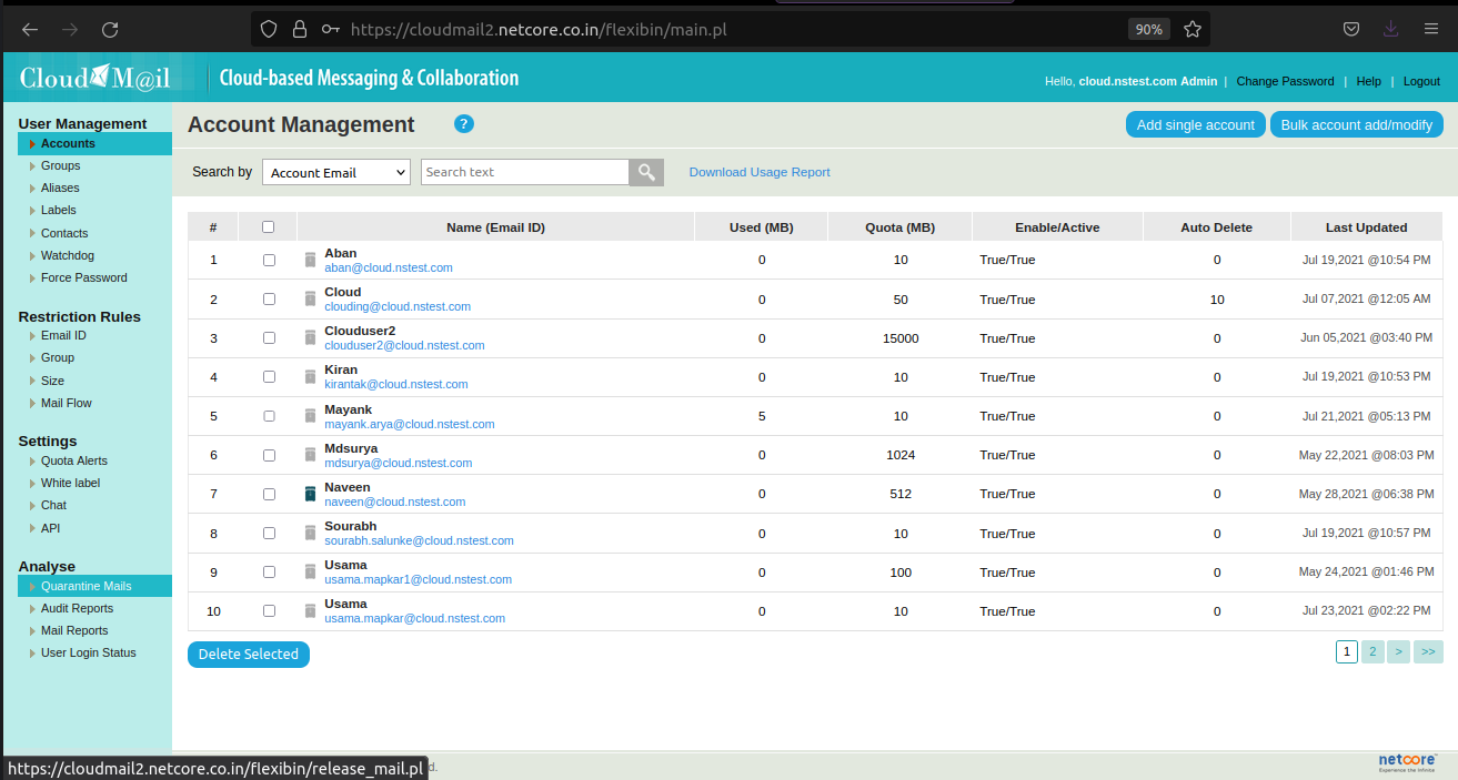 1. Login to Cloudmail admin panel >> http://cloudmail2.netcore.co.in/wsgi/login/