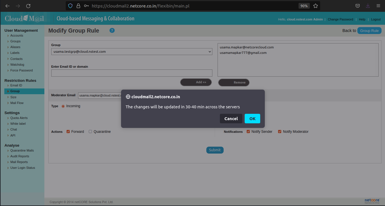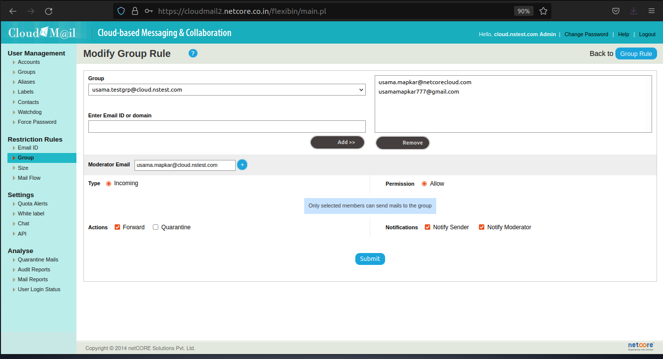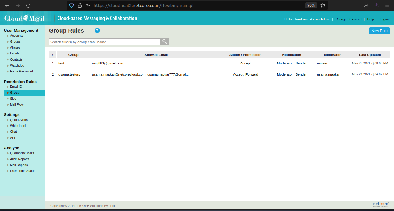 Follow the below steps to create a new group privilege rules on Cloudmail panel