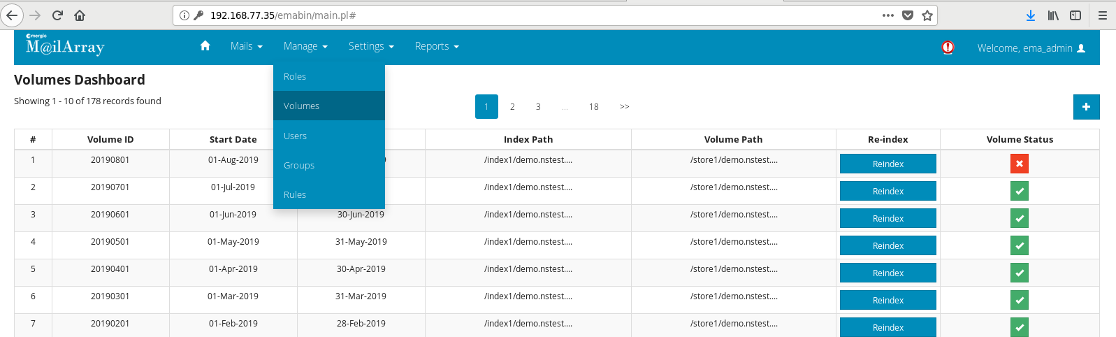 Please activate the Volume from EMA admin panel as per below steps to resolve issue.