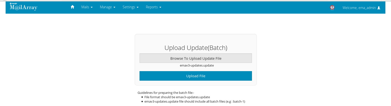The batch will get updated automatically via internet connection to EMA server onpremise.