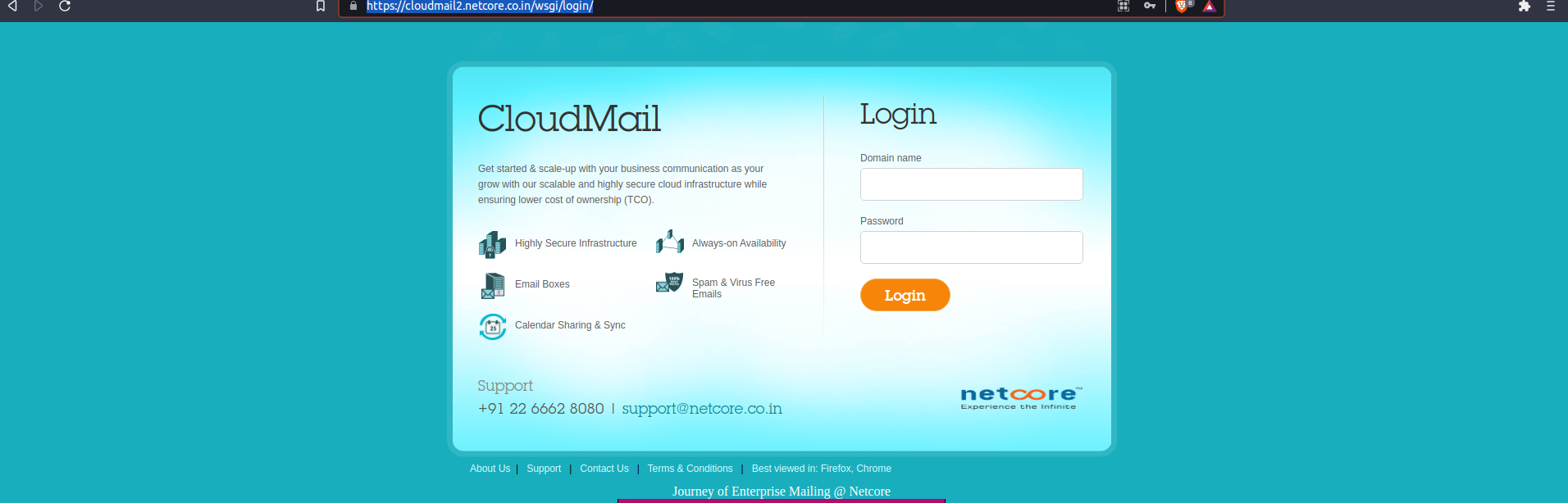 1=> Login to Cloud mail panel.by clicking on the link https://cloudmail2.netcore.co.in/wsgi/login/
