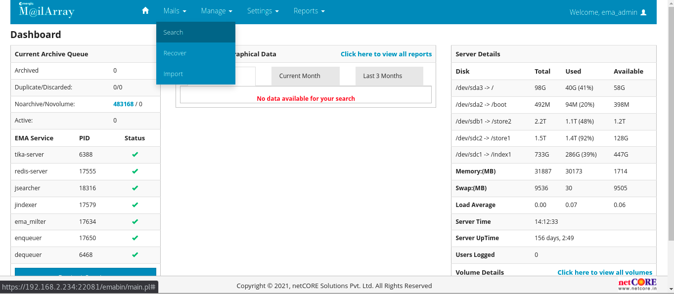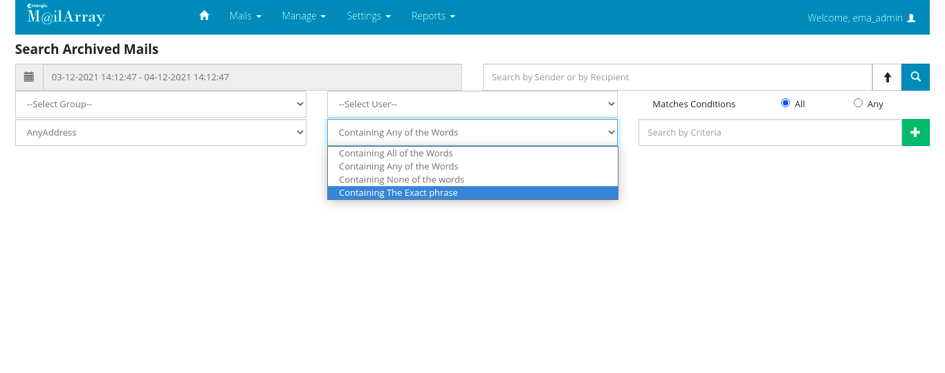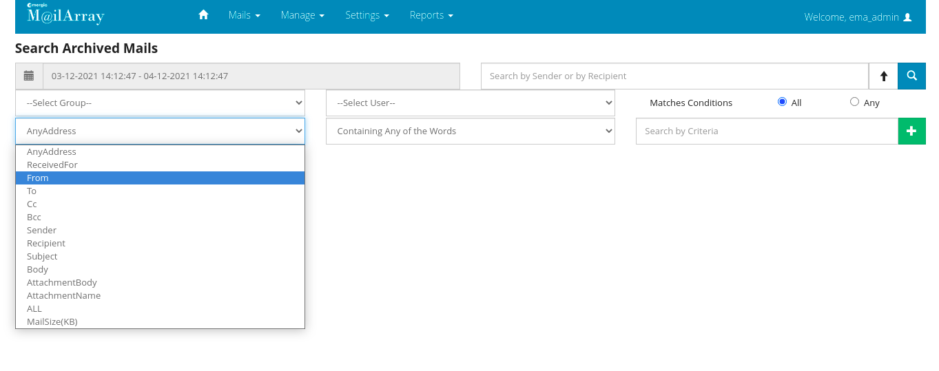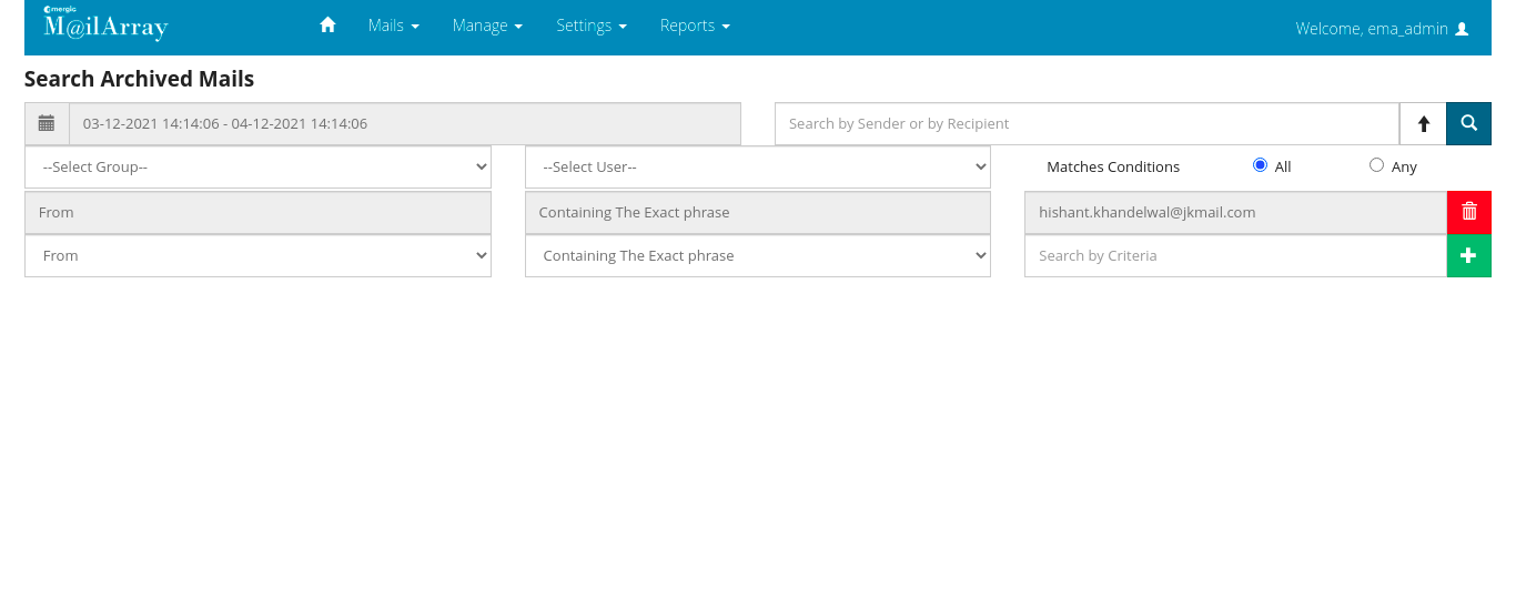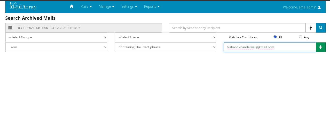 After login into the EMA server. Please click on Mail : Search