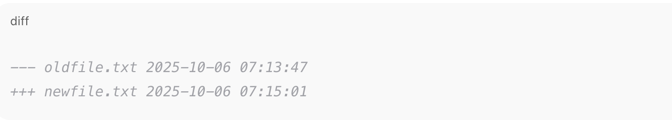 --- oldfile.txt | The original (old) file name and its last modified date |