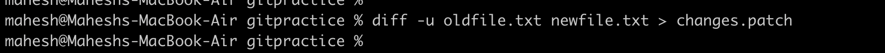 # diff -u oldfile.txt newfile.txt > changes.patch